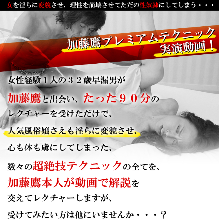 ⇒ 「加藤鷹流!プレミアムテクニック動画!7STEP SEX!」公式サイトへ