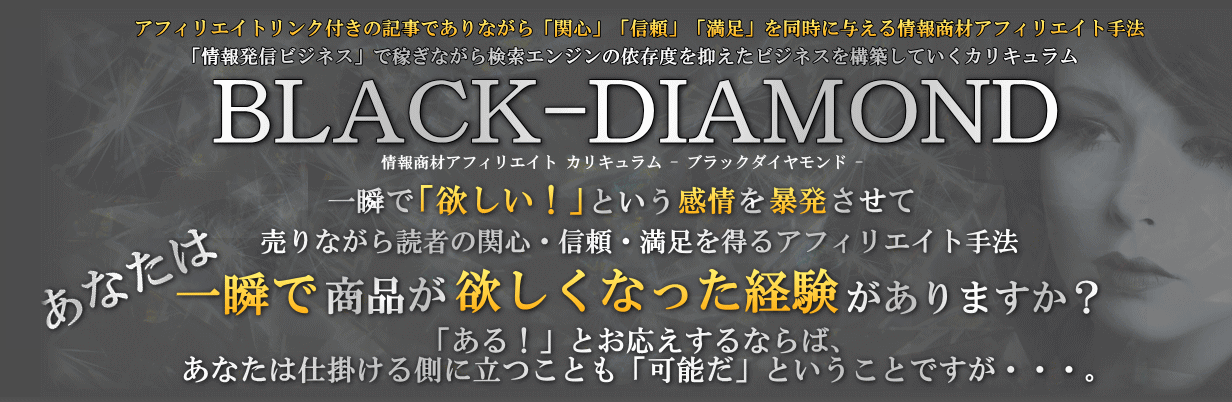 売り煽りをしない情報商材アフィリエイトノウハウ「Black Diamond-ブラックダイヤモンド-」