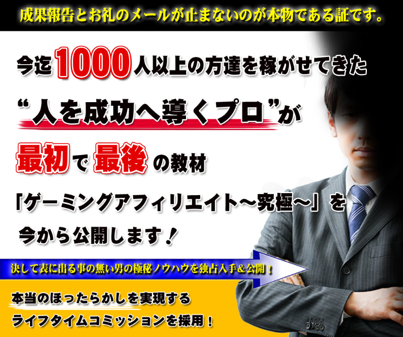 成長期のアフィリエイト市場に参入できるゲーミングアフィリエイト教材として、今ネットを中心に話題となっています。