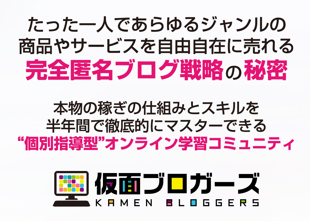 ブログで収入を得る仕組みを構築できるアフィリエイトオンライン塾「仮面ブロガーズ」