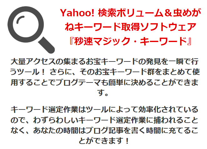 大量にアクセスを集めるキーワード取得ツール「秒速マジック・キーワード」