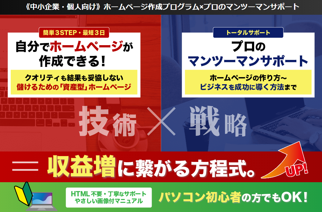 ホームページ作成プログラム×プロのマンツーマンサポート!