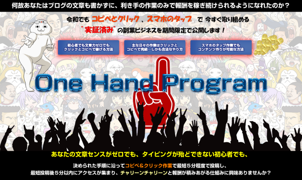 オリジナルで記事を書く必要が無いアフィリエイト教材「OHP(One Hand Program)」