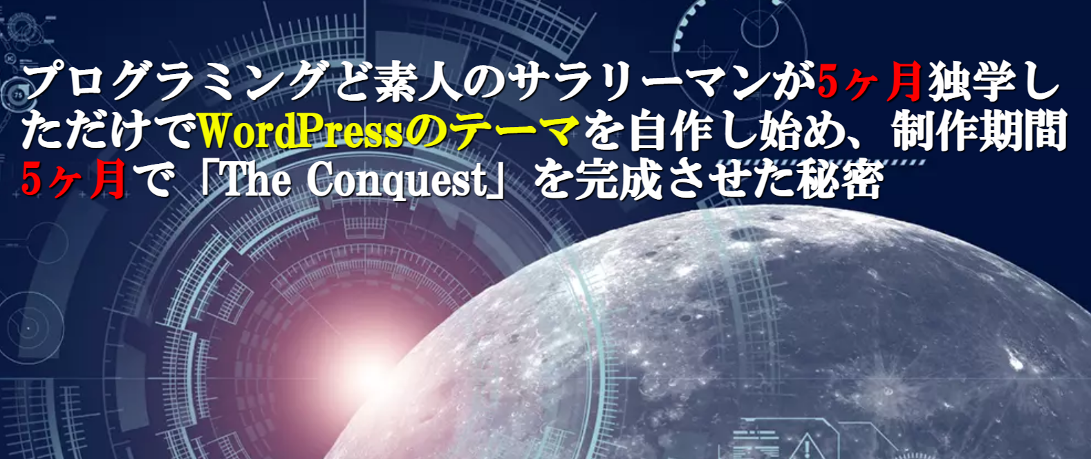 現在有料販売されている「The Conqeust」のファイル群を解説付きで公開しているので、回り道をすることなくWordPressテーマを制作できる中身になっています。
