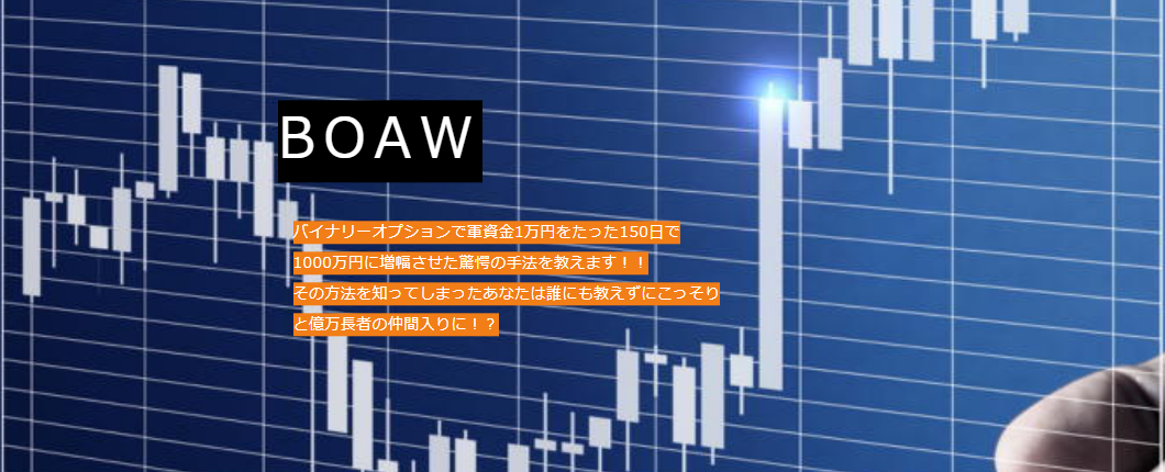 伊藤 彰一さんがリリースしているバイナリーオプション手法「BOAW~1万円が1000万円になった軌跡〜」。