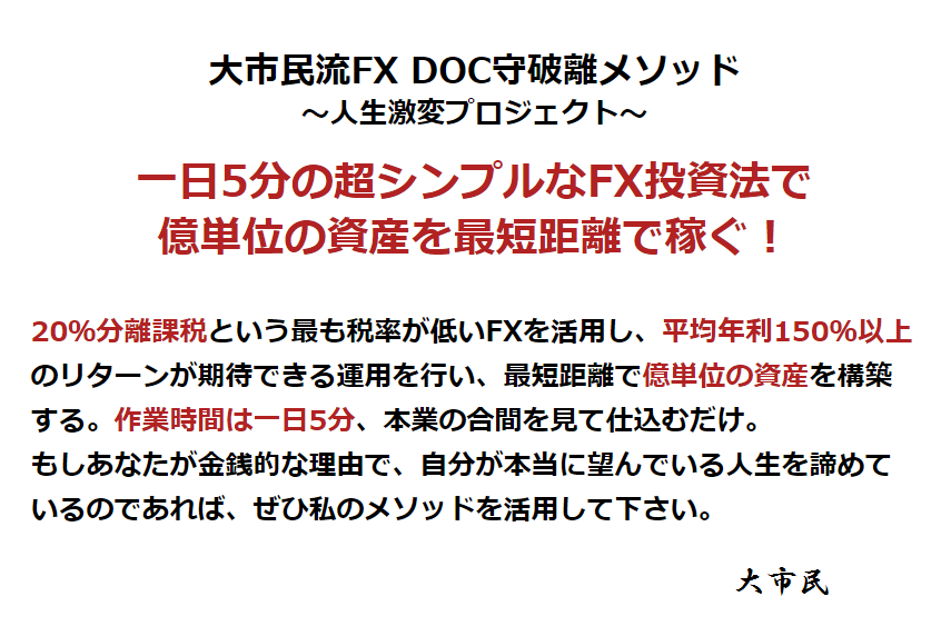 ⇒ 「大市民流FX DOC守破離メソッド(人生激変プロジェクト)」公式サイトへ