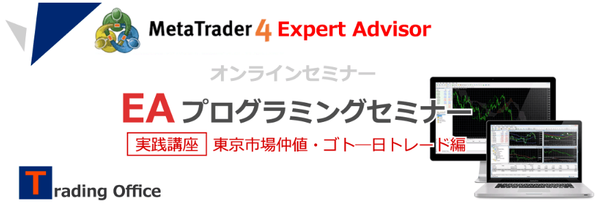 時間指定ロジックに特化!「EAプログラミングセミナー【実践講座】東京市場仲値・ゴト―日トレード編」