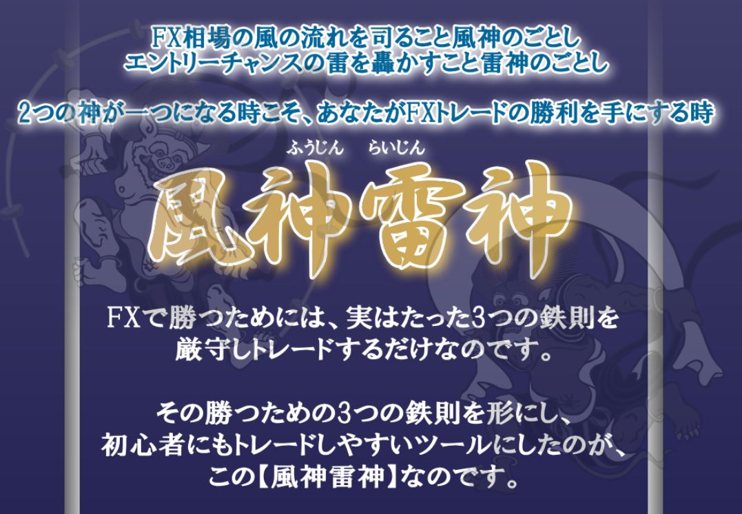 ⇒ 「FXで勝つための3つの鉄則を形にしたトレードツール【風神雷神】」公式サイトへ