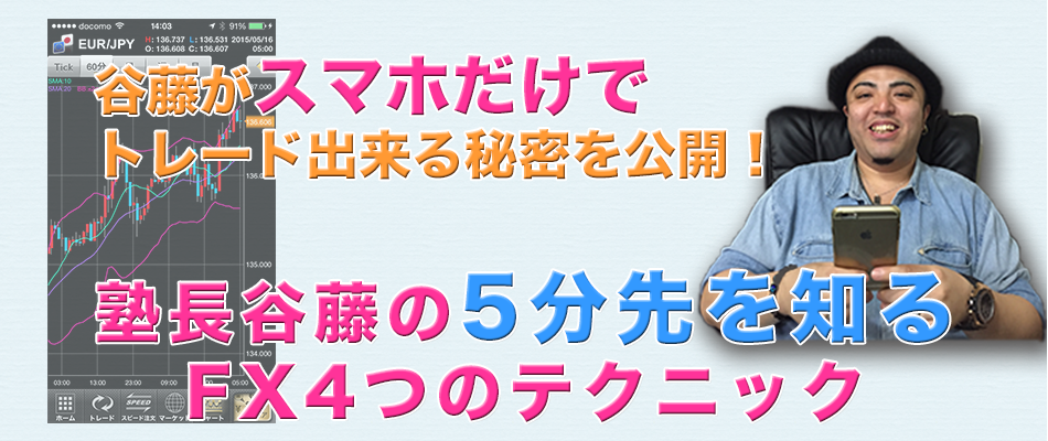 スマホだけで勝てるFXトレードができるFX裁量トレード教材「塾長谷藤の5分先を知るFX4つのテクニック」
