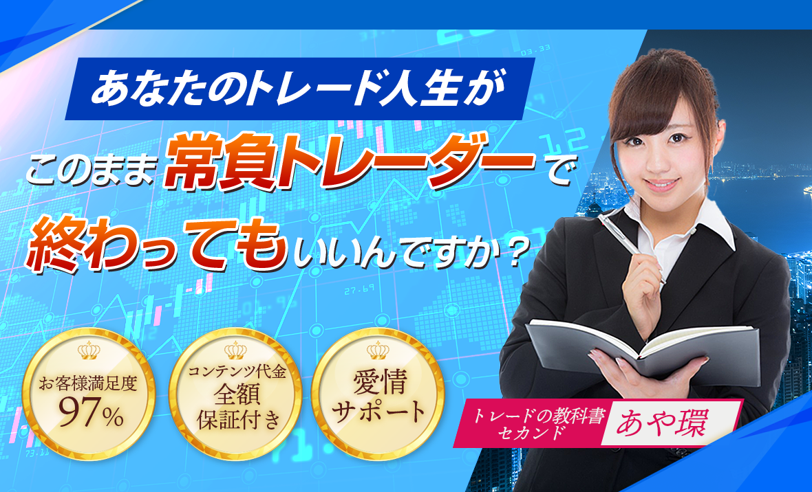 あや先生!本当に有難うございました。「あや環」を始める前の自分とは全く別人のわたしがここにいます。トレード成績もよくなりました。そしてなによりも、勝ちやすいトレードというものが体系的にわかってきたような気がします。
