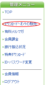 インフォカートに購入者ログインをして、「ダウンロード・オンライン販売」をクリック