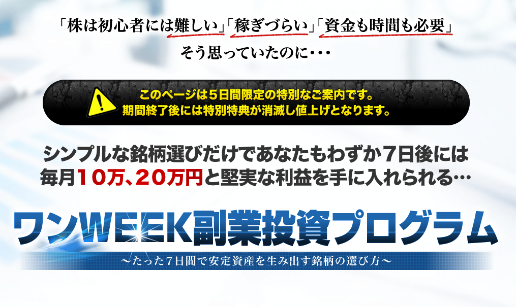 「ワンWEEK副業投資プログラム」をお得にゲットしましょう!