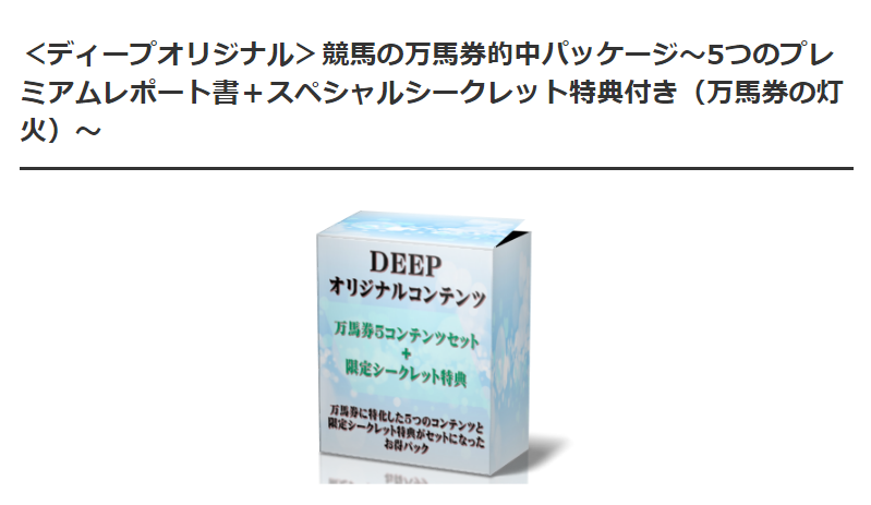 「競馬の万馬券的中パッケージ」は上記が最大の特徴で、