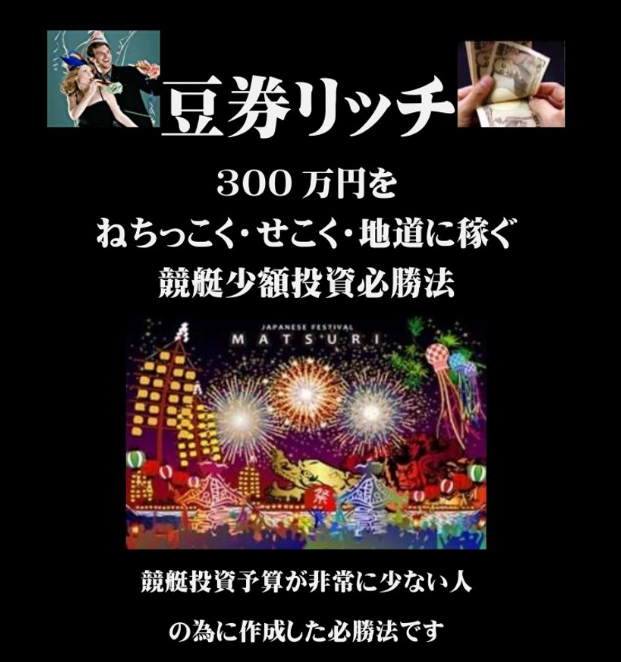 資金が少なくても実践できる競艇必勝法「豆券リッチ300万 競艇少額投資必勝法」