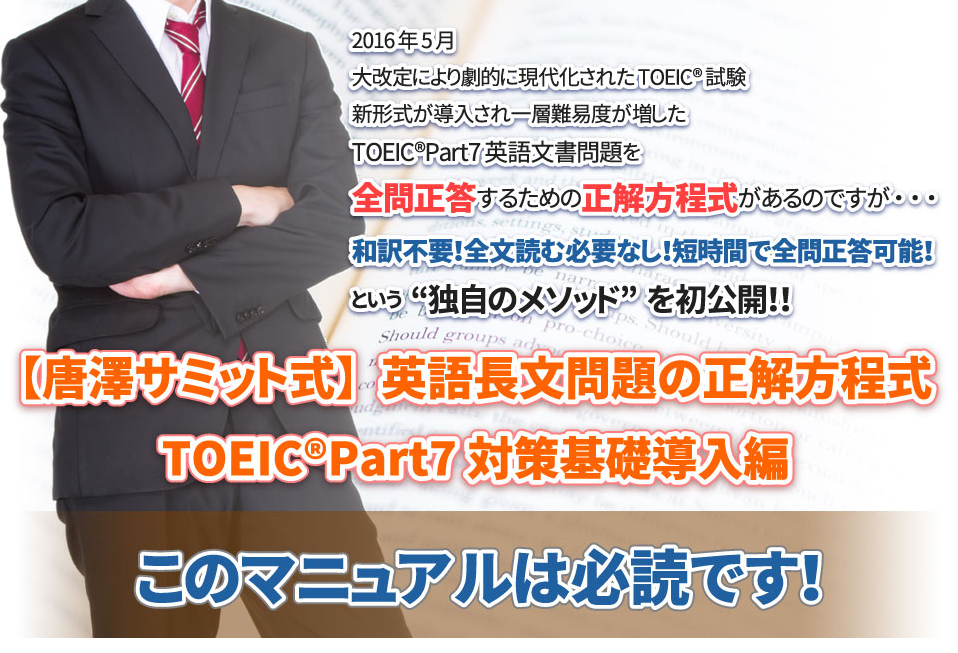 ⇒ 「唐澤サミット式英語長文問題の正解方程式TOEIC Part7対策基礎導入編」公式サイトへ