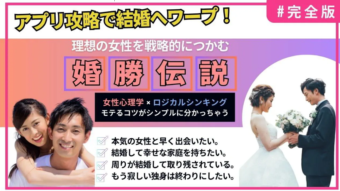 理想の女性を戦略的に掴む恋愛ノウハウ「婚勝伝説〜婚活アプリ攻略術で成婚へ!〜」