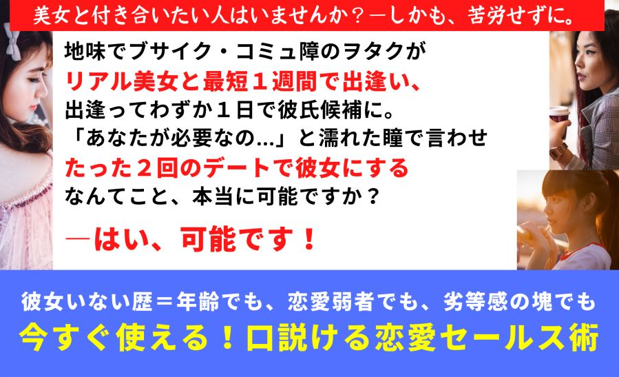 ⇒ 「今すぐ使える!口説ける恋愛セールス術MOTEKING」公式サイトへ