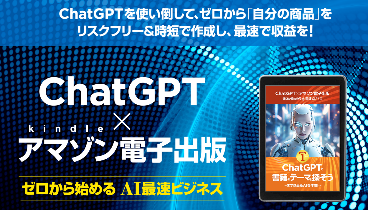 ⇒ 「ChatGPT×アマゾン電子出版〜ゼロから始めるAI最速ビジネス」公式サイトへ