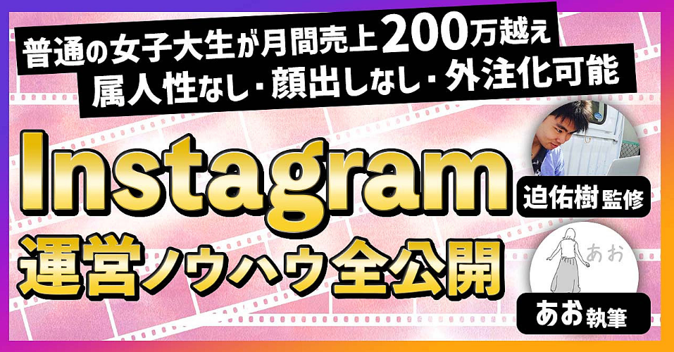 ⇒ 「インスタのアカウント設計から収益化までの全ノウハウ」公式サイトへ