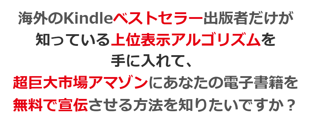 ⇒ 「Kindle電子書籍禁断の上位表示アルゴリズム」公式サイトへ