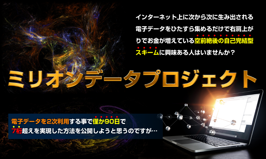 自己完結で稼げるネットビジネス「ミリオンデータプロジェクト」