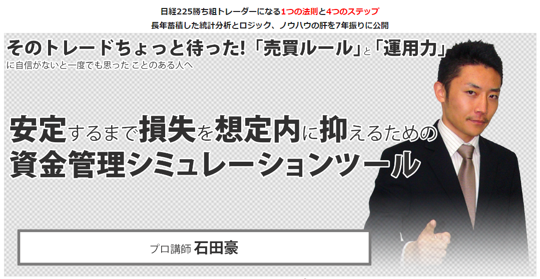投資の勉強株式会社さんがリリースしている日経225先物システムトレードソフト「日経225勝ち組トレーダーになる1つの法則と4つのステップ」。