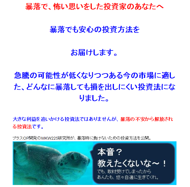 暴落で負けない日経225オプション教材として、いまネットを中心に話題となっています。