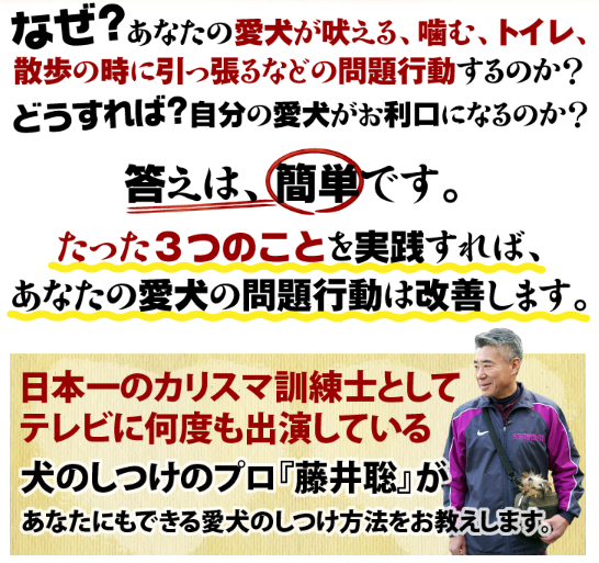 ⇒ 「犬しつけ ドッグトレーナー藤井聡が教える犬のしつけ教室」公式サイトへ