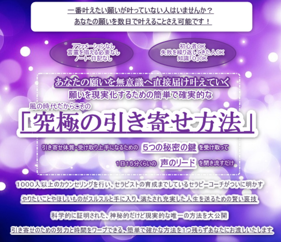 即時性がある引き寄せプログラムとして、いまネットを中心に話題となっています。