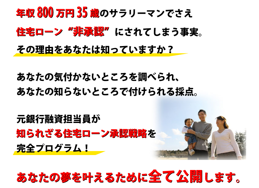 住宅ローン審査を攻略できるローン承認マニュアルとして、いまネットで話題となっています。