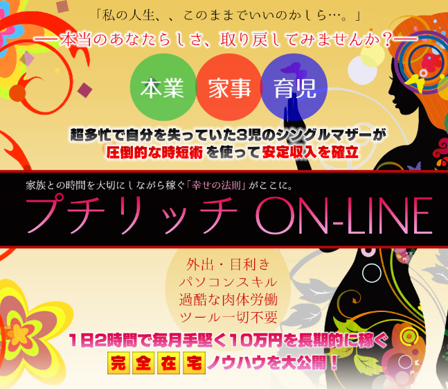 プチリッチOn-Line転売は女性にピッタリですし、とても魅力的です。 多忙な中でも隙間時間で稼ぎたい女性の救世主的存在になると思います。