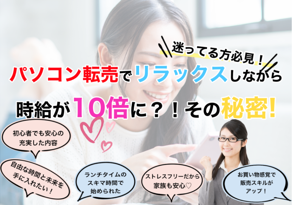 普通に使えるパソコンを仕入れて、仕入れよりも高く売るだけなので、知識や経験がない私でも始められることができました。