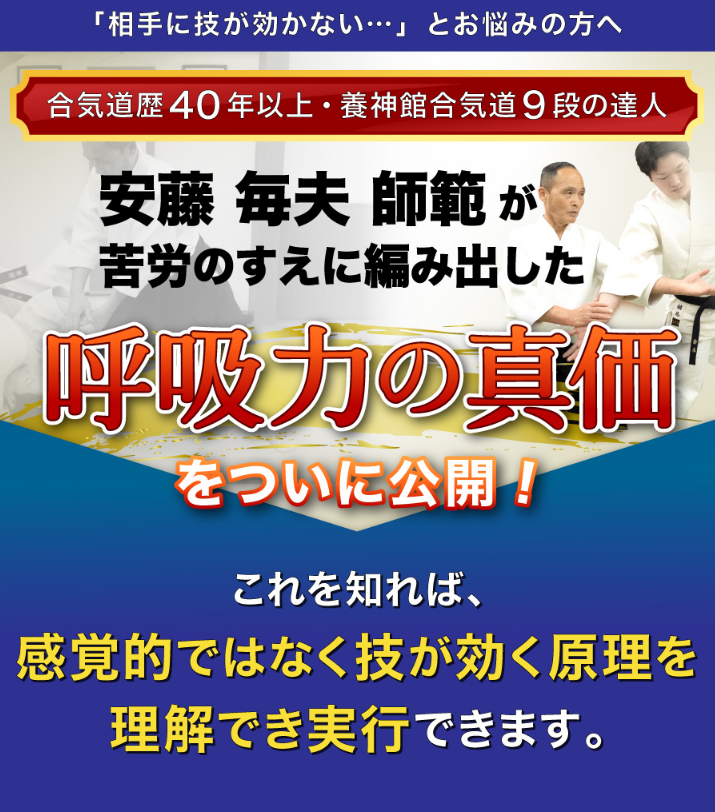 相手に技を効かせるようになる合気道教材として、現在インターネットを中心に人気沸騰中!