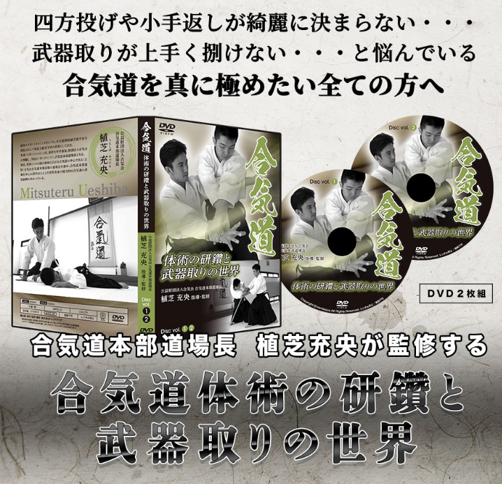 新型コロナウイルス感性症拡大に伴い、稽古が思うようにできないときこそ、 DVDで植芝充央道場長のご指導をご覧いただき、ミラーニューロン(人間の脳内細胞のひとつで相手の動きを見て、 自分自身も同じように動いてしまうこと)をフルに活動させて、さらなる上達を一緒に目指して参りたいと思います。