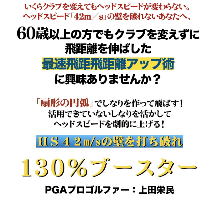 小野 敬人さんがリリースしているゴルフ上達教材「ゴルフ飛距離130%ブースター」。