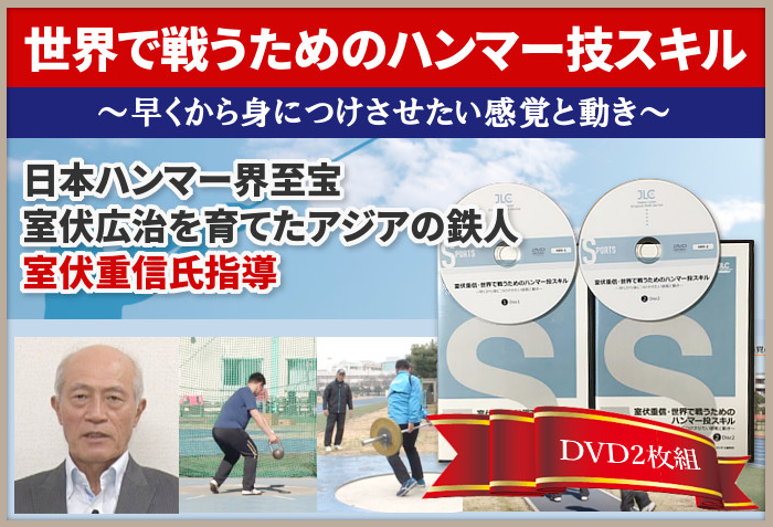 株式会社トレンドアクアさんが販売しているハンマー投げ上達DVD「ハンマー投げ室伏メソッド〜早くから身につけさせたい感覚と動き〜」。