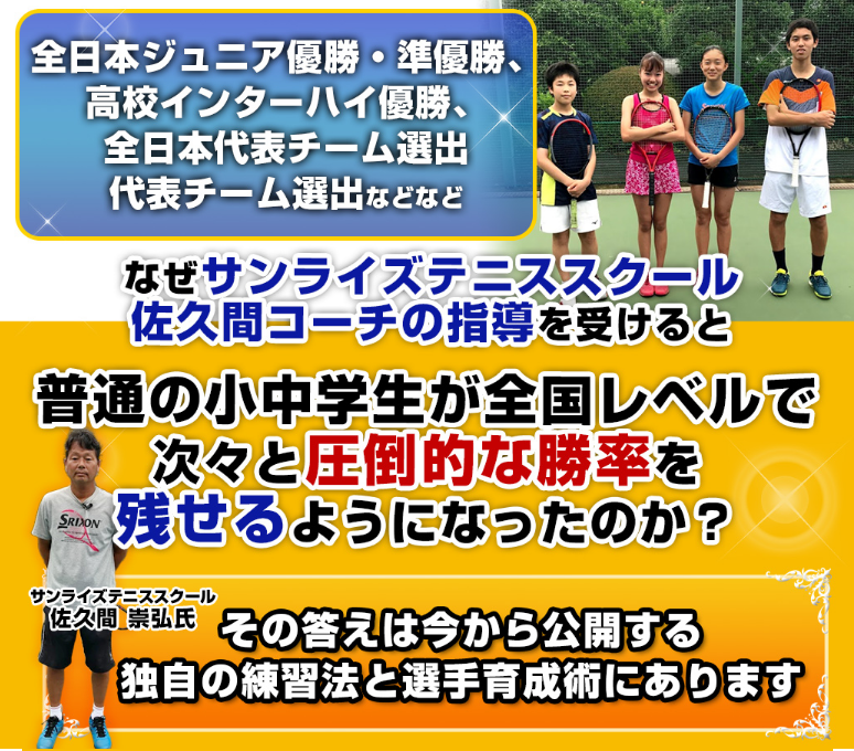 普通の小中学生を全国トップレベル選手に成長させたジュニアテニス指導法として、現在ネットを中心に話題に上っています。
