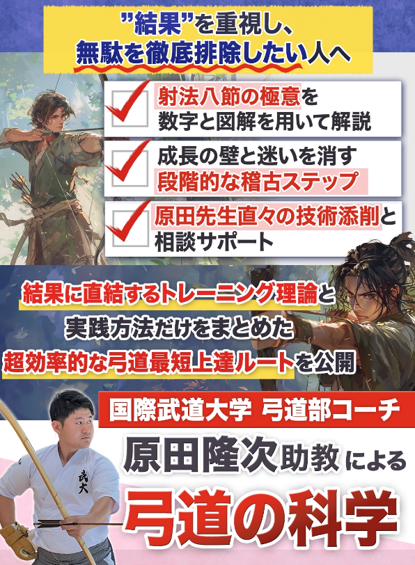 ⇒ 「弓道の科学〜理論と実践で高める技術の極意〜」公式サイトへ